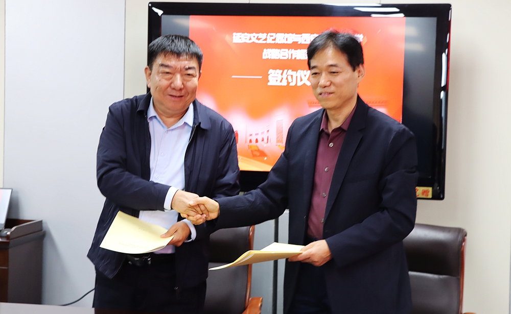 签约仪式上,党争胜副校长与刘妮馆长共同签署《鲁艺记忆》《燃烧的岁月:我的父辈在延安》两本红色著作的英文翻译出版合作协议,与侯海成副馆长共同签署禁漫