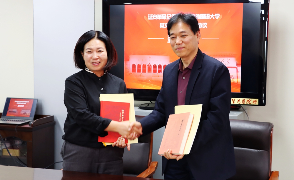 为深入贯彻落实党的二十大精神、全国宣传思想文化工作会议精神及习近平总书记关于运用好红色资源、传播好红色文化的重要指示批示精神,坚定文化自信,讲好中国故事,助力红色文化走出国门、迈向世界,2023年10月8日,我校与延安革命纪念馆签署英文翻译出版合作协议,与延安文艺纪念馆签署战略合作协议,开启与两馆深化合作的新篇章。