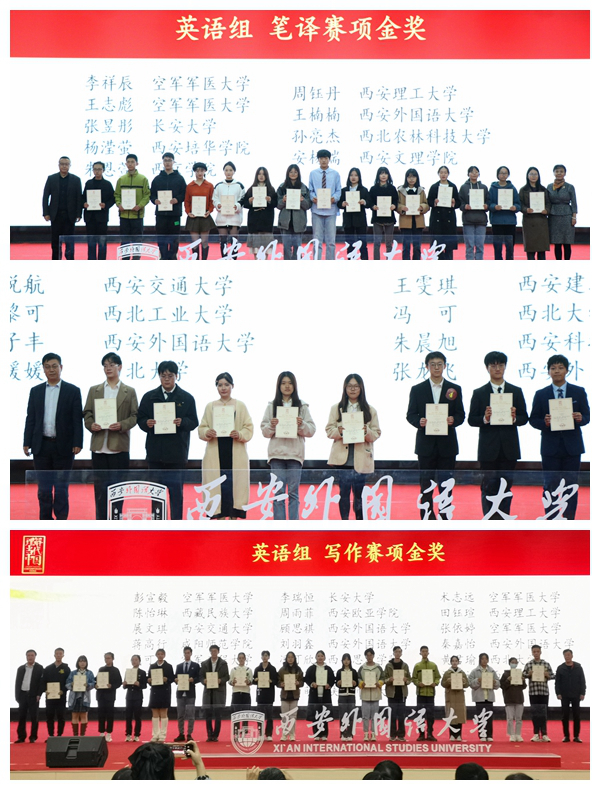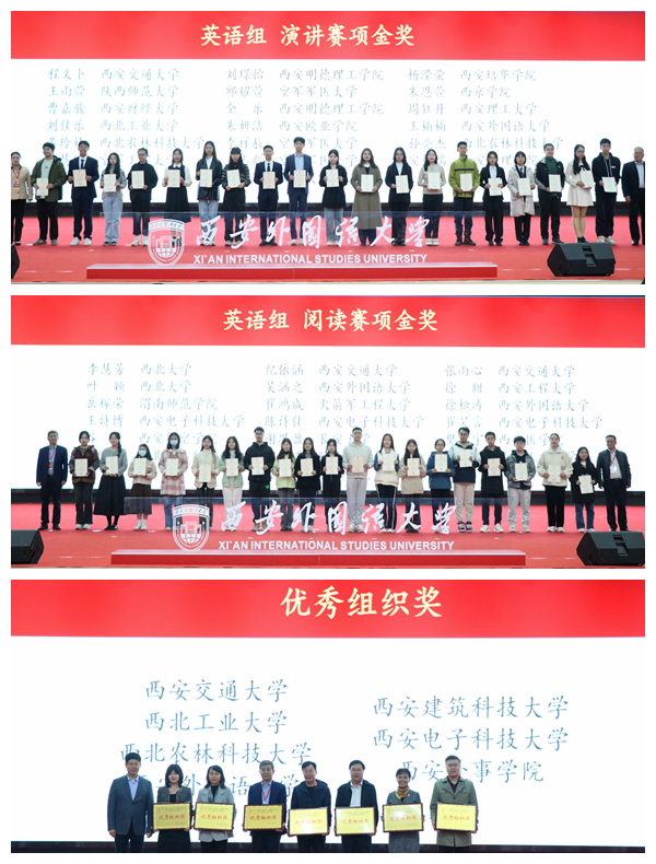 王子丰、张龙飞、刘羽鑫、秦嘉怡、徐松涛分获口译赛、写作赛、阅读赛金奖。