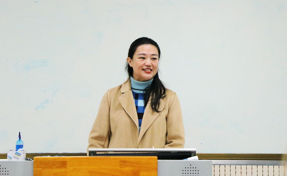 辅导员程强主持讲座,2023级本科生参加讲座。