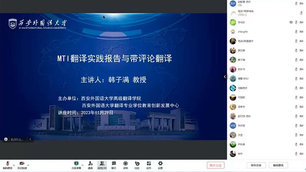 2023年11月29日,上海外国语大学语料库研究院博士生导师韩子满教授做了题为“MTI翻译实践报告与带评论翻译”的讲座。禁漫