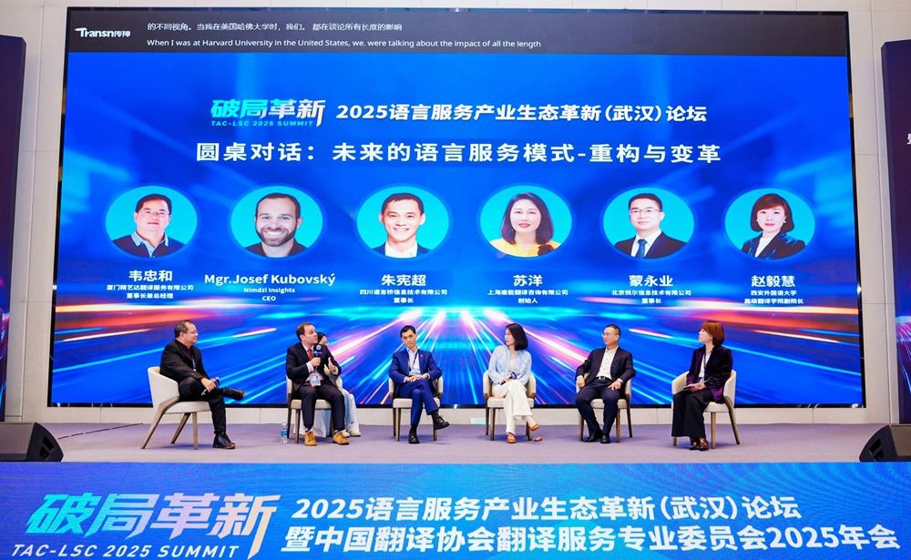在“未来的语言服务模式——重构与变革”圆桌对话环节,赵毅慧与其他5名业界专家同台交流,围绕全球语言服务发展趋势、AI技术落地实践、商业场景创新、产业生态协同赋能及专业人才培养等关键维度展开深度研讨,为行业突破传统模式束缚、实现从单一服务提供者向生态共建者的转型提供了多元视角与可落地的实践参考。