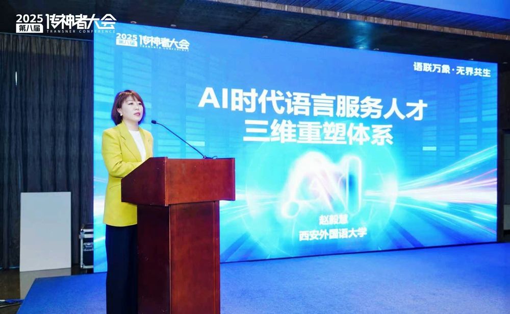 在9日的“传神者大会”主旨发言环节,赵毅慧以“人工智能时代语言服务人才培养的三维重塑体系”为题作专题报告,聚焦AI技术对语言服务行业的颠覆性影响,从能力结构、培养路径、协同机制三个维度,系统阐述了适应产业革新需求的人才培养新范式,为高校与企业协同培育复合型语言服务人才提供了新思路。