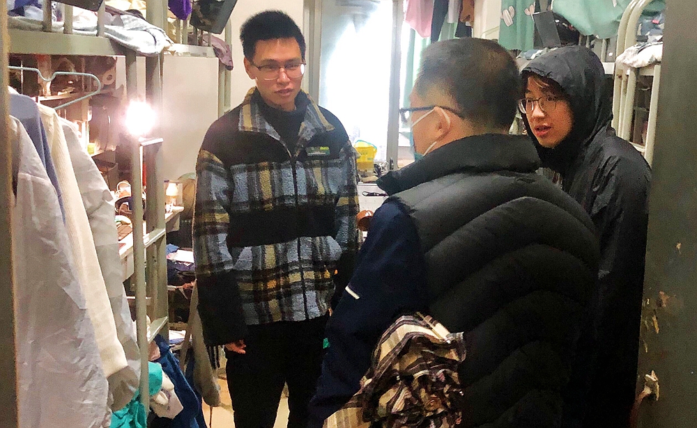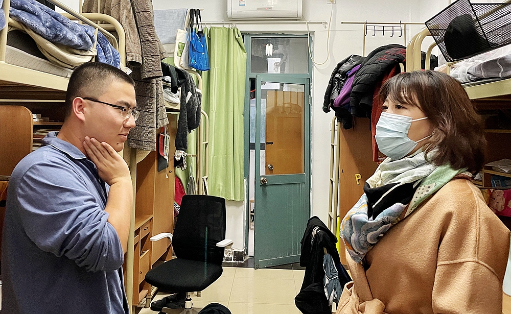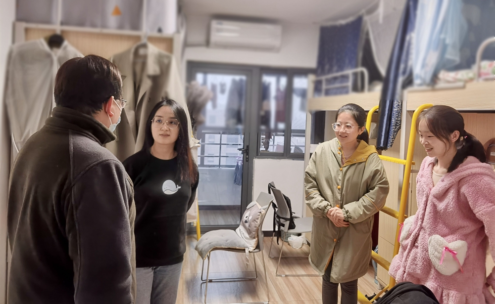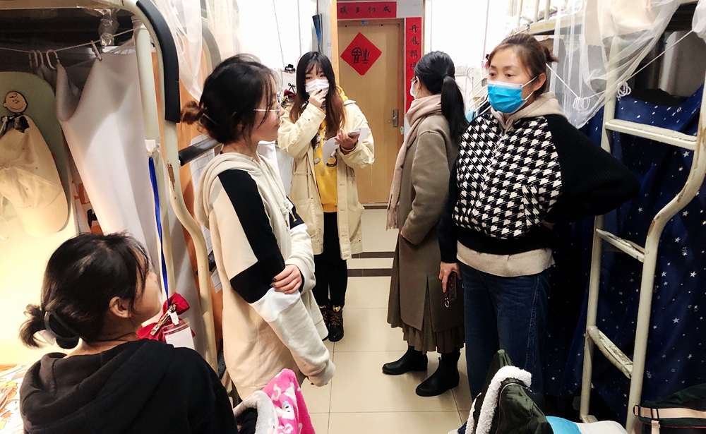 分党委书记樊花,副院长陈卫国、吉文凯、赵毅慧,组织员张萌,辅导员温帅、高乙菡、霍丹丹、冯斯怡、师羽哲走访本科生、研究生宿舍,全面深入了解学生关切,并排查宿舍安全隐患。