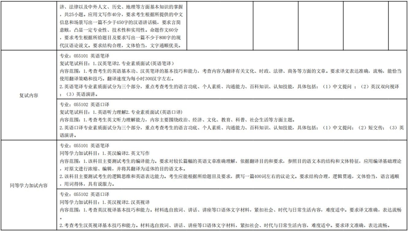 翻译硕士专业学位下设英语笔译专业(专业代码 055101)和英语口译专业(专业代码 055102)。