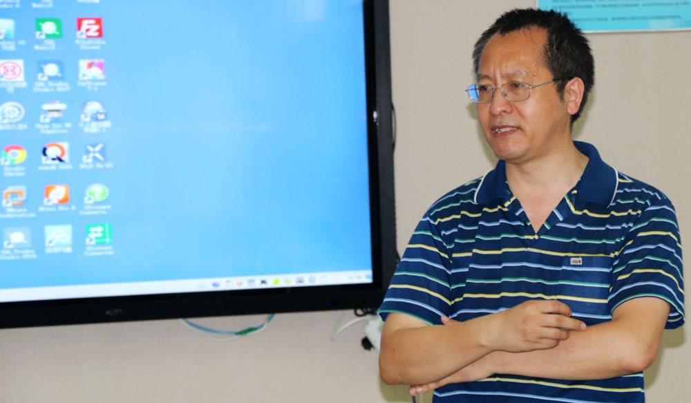 刘育红教授(右后)为中宣部副部长景俊海、国际翻译家联盟主席刘崇杰担任翻译
