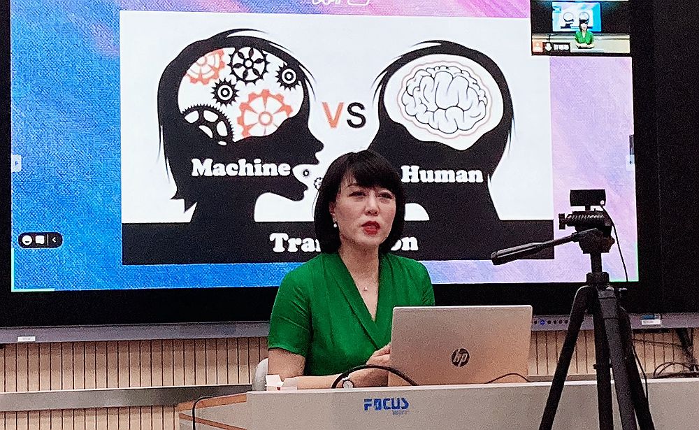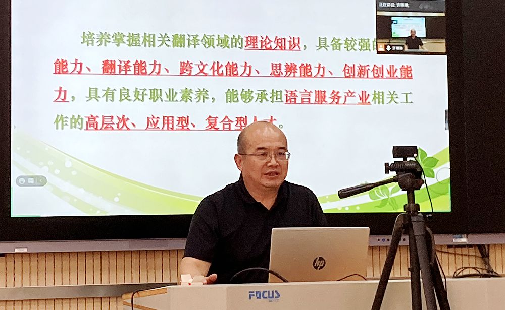 法律及知识产权翻译方向的培养目标和课程体系。曹达钦主任介绍了翻译技术的基本概念以及行业运用,讲解了翻译技术在语言服务行业的重要作用。
