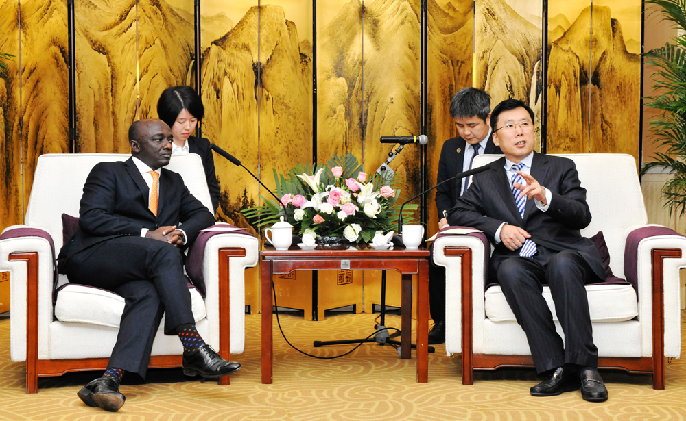 教师(左后)为魏增军副省长会见 加纳驻华大使担任交替传译 |