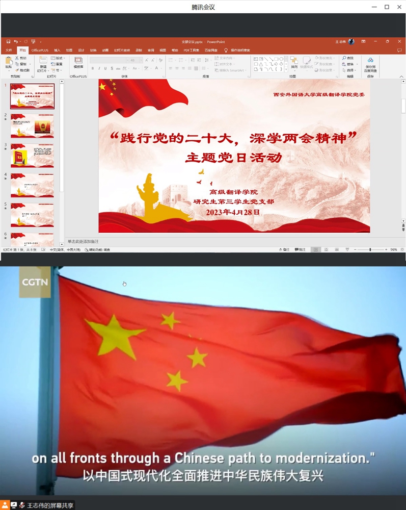 分党委研究生第三学生党支部举办“践行党的二十大 深学两会精神”主题党日活动。支部全体党员参加活动,组织委员王志伟主持活动。