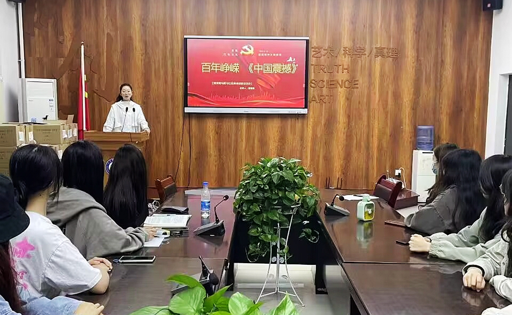 博译青马研习社于2023年5月10日举办“百年峥嵘 《中国震撼》”经典诵读团日活动。社长谢宛容主持活动,全体社员及学生党支部代表参加活动。