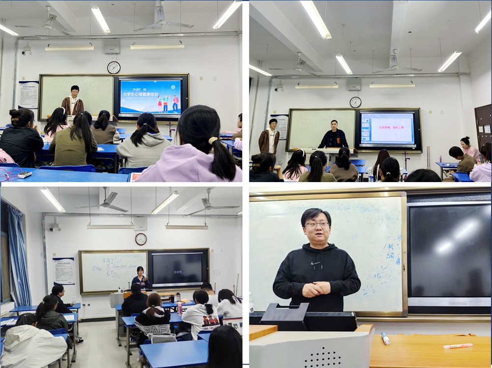 各班心理委员、班长向大家讲解心理健康方面的知识,包括大学生活中压力的来源、情绪的管理方法、释放压力的途径等,介绍心理咨询的相关应用和误区。学生们积极发言,分享自己对于心理健康的理解和做法。