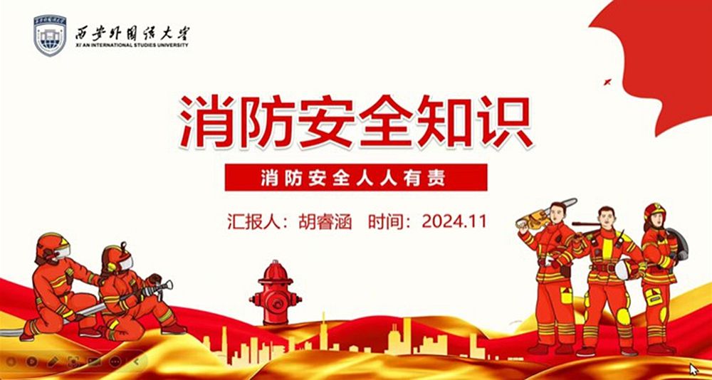 韩烨睿同志结合社会真实事件,播放了事故现场视频,分析了引起火灾的原因,呼吁大家深刻吸取火灾背后的教训,重视消防安全,加强日常风险防范,以此类事故为鉴,积极参加消防模拟演练,学习应急自救技巧,保障自身安全。