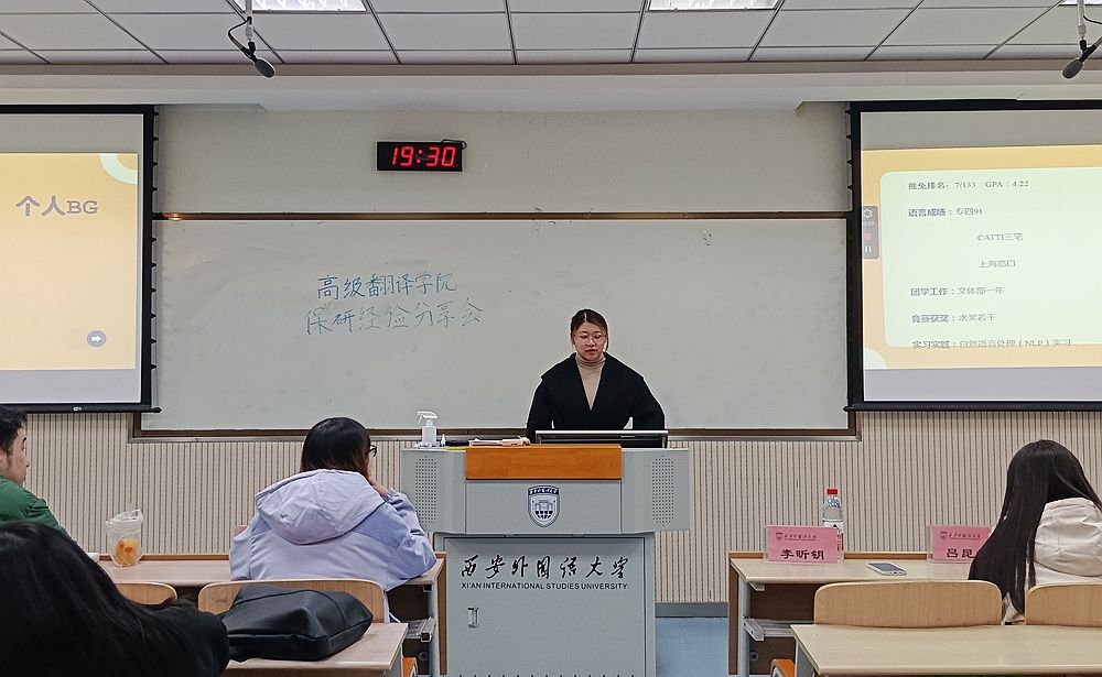 李昕钥介绍了上海交通大学、重庆大学、北京外国语大学等高校的夏令营考核形式,表示应该多多关注社会时事热点问题,如“AI与翻译的关系”等,以不变应万变,以积极的心态应对外在压力。