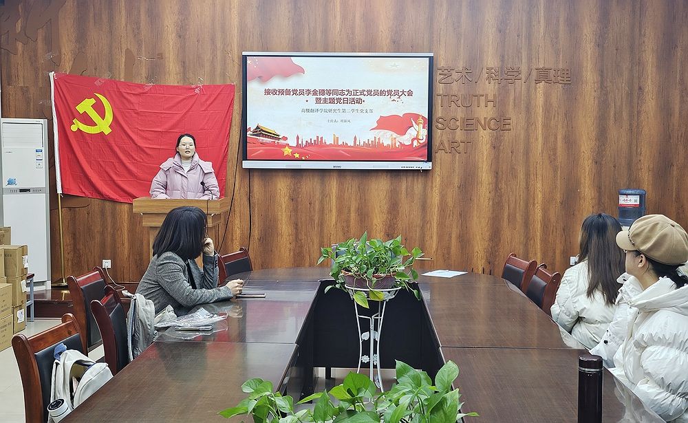 顾新凤同志介绍了预备党员转正大会的主要流程。预备党员李金穗、陈泓羽、孙镕菁、李田等四位同志依次表态发言,汇报了一年来在思想、工作和生活上的表现。全体正式党员举手表决,一致同意接收四位同志为正式党员。