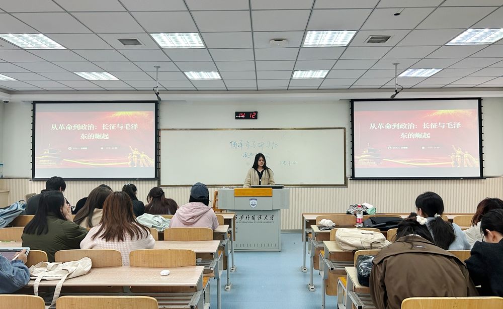 此前,为纪念长征出发90周年,博译青马研习社紧扣“弘扬伟大长征精神,走好新时代长征路”主题,以多维视角创新开展纪念活动,已成功举办“歌曲里的长征”“油画里的长征”“诗词里的长征”特色微党课,并配套开展专题知识竞赛。本次特别推出读书分享会作为理论深化的关键环节,让社员们从国内外档案、当事人回忆等一手资料中深刻理解红军长征及其在中国革命中作用,引导社员从战略决策、群众动员、国际传播三个维度解构长征的深层历史逻辑。社员们表示,在今后的学习和工作中要继续发扬和践行长征精神,勇于尝试新方法、新思路,要继续坚定理想信念,不畏挫折、不懈奋斗,争做中国红色文化和中华优秀传统文化的国际传播者。