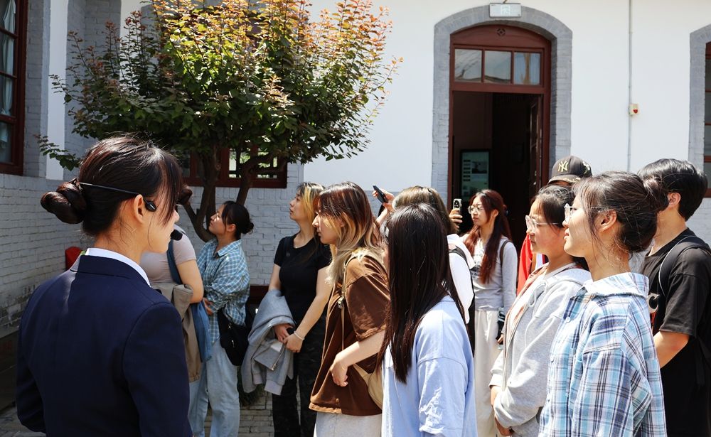 社员们在讲解员的带领下,对照纪念馆文物双语介绍牌,详细参观了纪念馆1号院旧址原状复原陈列、3号院统战科旧址复原陈列。大家沉浸式感受到那段艰苦奋斗又激情燃烧的岁月:接待室里的桌椅,仿佛还留存着当年革命先辈们与各界爱国人士促膝长谈、共商救国大计的余温;会客厅中的宣传画和标语,仿佛将同学们带回到了那个全民奋起抗争、热血沸腾的年代;理发室里的工具,见证了革命队伍在艰苦条件下依然保持着积极向上的生活态度;机要室内的电台、加密的文件,让人不禁联想到革命先辈们在隐蔽战线上与敌人斗智斗勇的惊险场景,他们用智慧和勇气为革命事业筑起了一道坚不可摧的防线。