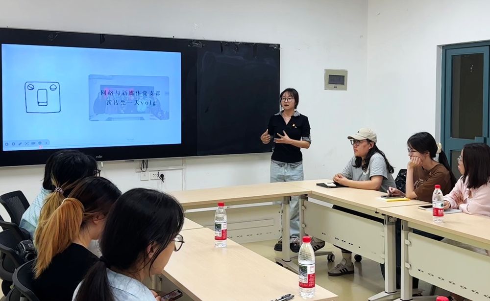 鹿筱珺介绍了翻译专业特色、翻译在跨文化交流中的重要作用及其在时代发展中的多元业态和广阔前景。网络与新媒体专业学生党支部副书记刘佳婧介绍了网络传播、社交媒体运营、数字内容创作等专业方向,强调了新媒体在信息传播、舆论引导和文化建设方面的强大影响力。