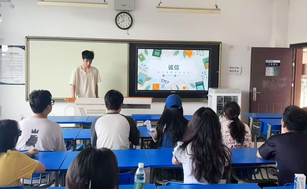 班会上,班干部普及了消防、校园贷、网络诈骗等常见安全问题的基本常识,引导大家提高自我保护意识,识别骗局,守护自身财产安全,并结合考试、作业等场景,强调诚信的重要性,鼓励大家从日常小事做起,坚守诚信底线。