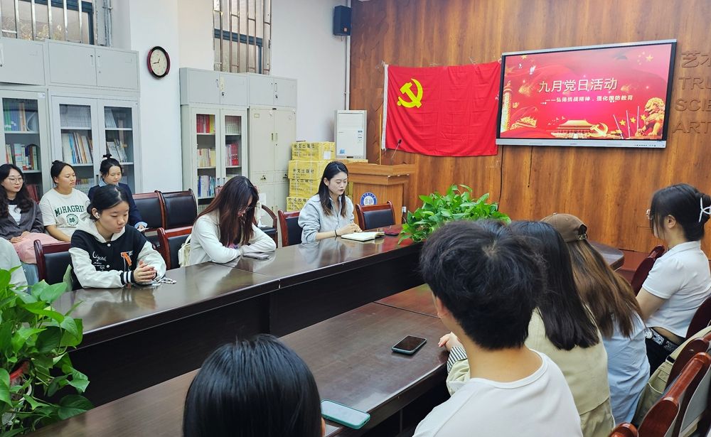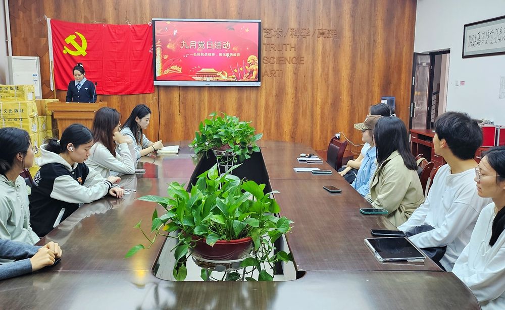 党委研究生第二学生党支部于2025年9月18日开展“弘扬抗战精神,强化国防教育”主题党日活动。支部全体党员参加,支部副书记顾新凤主持活动。