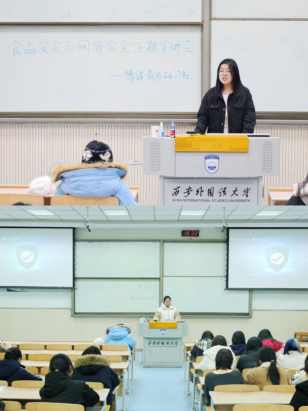 博译青马研习社近日举办两场讲座,围绕食品安全、网络安全、生命安全、舆论安全系统普及安全知识,助力新生提升自我保护能力。