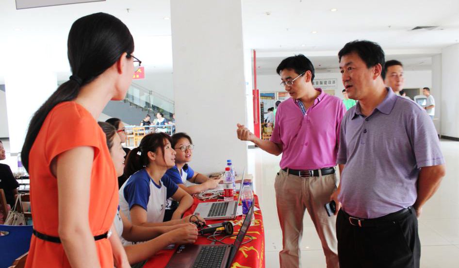 在校门内设有接待点,新生首先领取相关材料,然后在值班学生的指引下到图书馆一楼大厅进行数字化报名。新生大多由父母陪同,半数是第一次离家求学。为培养他们的独立意识,我校特地设有家长等待区,让新生自主完成报到手续,尽快适应新生活。