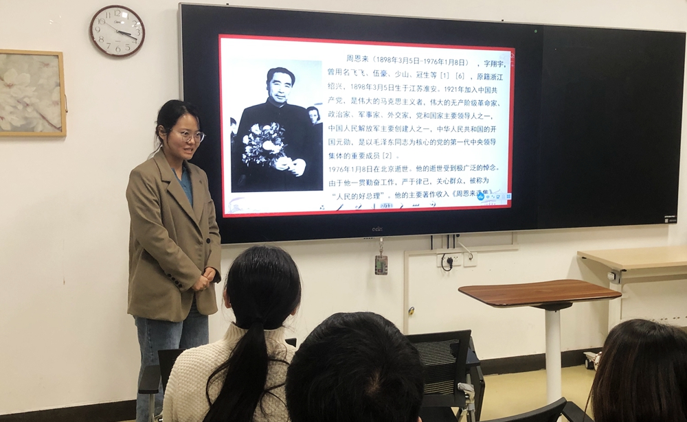 在系列活动“党员同学讲党史”中,党员李松鞠以“廉洁自律的周恩来”为题上了一堂精彩纷呈的党课。她通过讲述“我要中国料子”“我不进,那不是我的家”“多付钱使下级不再送礼”等故事,向大家展示了周总理艰苦朴素、躬行节俭的作风。