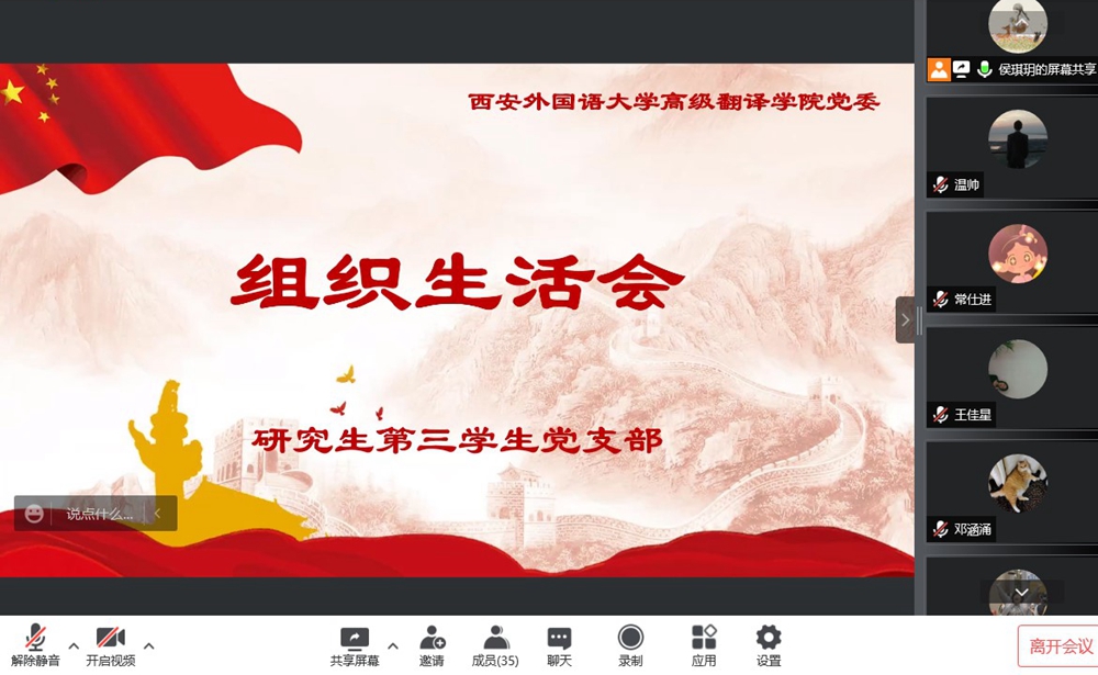 分党委研究生第三学生党支部召开组织生活会。全体党员参会,认真开展评议工作,会议由支部副书记侯琪玥主持。