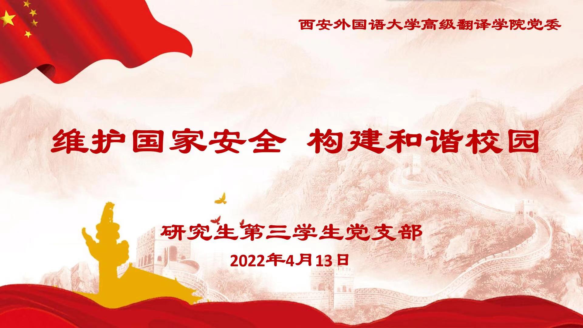 分党委研究生第三学生党支部组织全体党员与第60期发展对象采用线上线下相结合的形式,开展了“维护国家安全,构建和谐校园”主题党日活动。