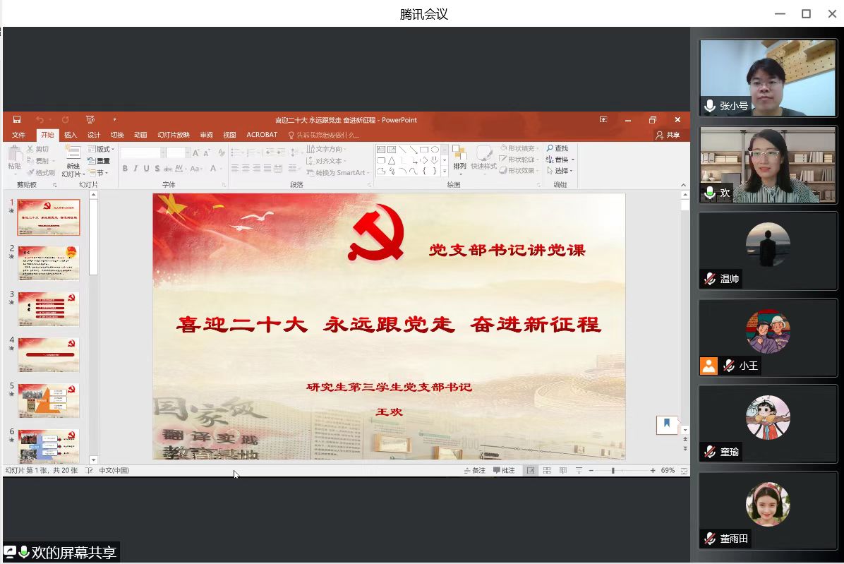 分党委研究生第三学生党支部开展“党支部书记讲党课”活动,支部书记王欢做了题为“喜迎二十大,永远跟党走,奋进新征程”的主题党课。禁漫