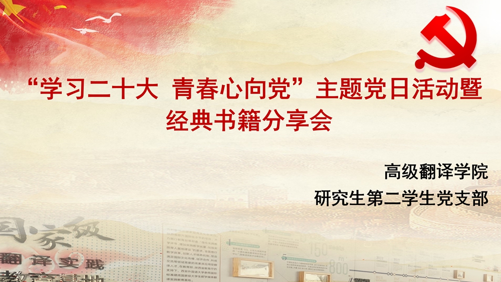 分党委研究生第二学生党支部开展主题为“学习二十大,青春心向党”的党日活动暨经典书籍分享会。支部全体党员参加活动,组织委员钟订梅主持活动。