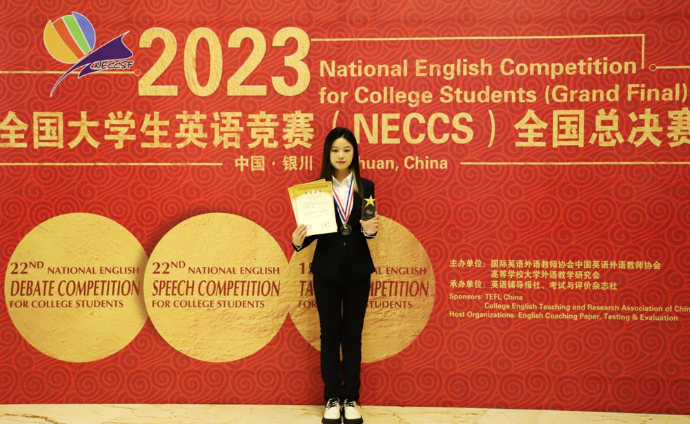 2020级本科生苏昂霄经中外教师培训和自身努力通过层层选拔,获得代表陕西赛区参赛的资格,获第二十二届全国大学生英语演讲比赛特等奖、第二十二届全国大学生英语辩论赛三等奖。